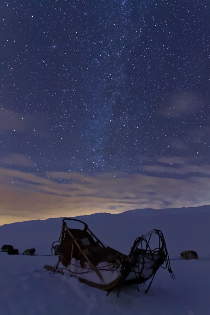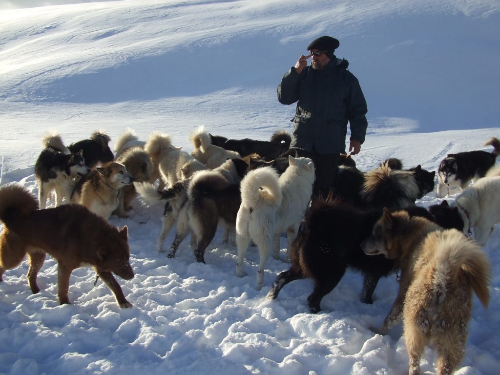 Capable de tracer sa propre piste, quels que soient l’état et la quantité de neige, tout en tractant des traîneaux, le Groenlandais poursuit la tradition millénaire et cela participe réellement à son équilibre psychologique et physiologique ; il est d’une vigueur et d’une résistance étonnantes.